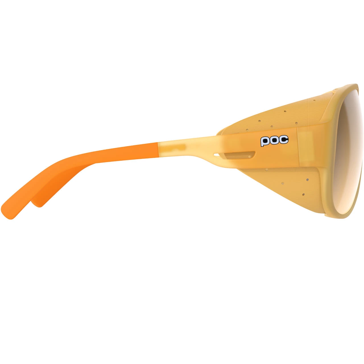 Rahmen aus Bio-GrilamidLeicht und stabilGriffiger NasenstegVerstellbare BügelAbnehmbare Lederschilde zum seitlichen Schutz der Augen